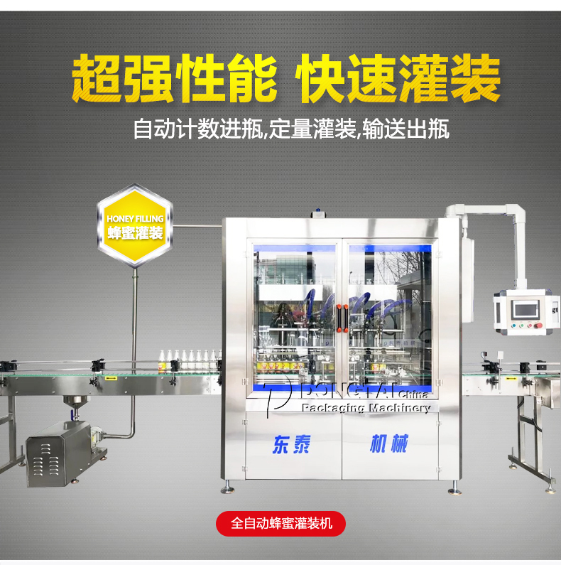 1、該機為全自動蜂蜜定量灌裝機,配有自動攪拌功能,使物料混合更加均勻 ,有效的解決灌裝誤差大的問題;