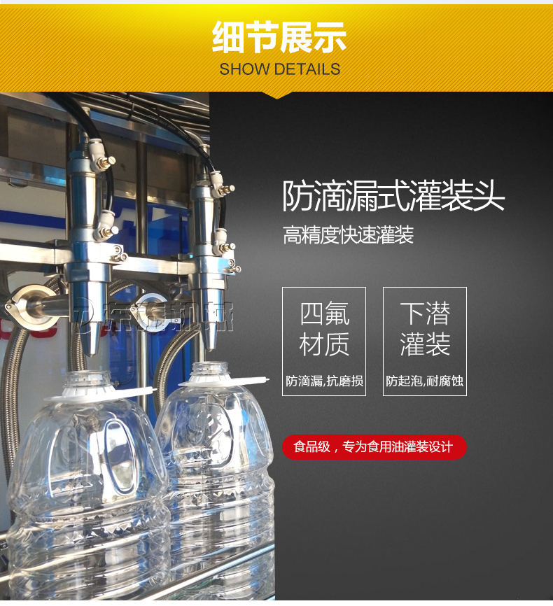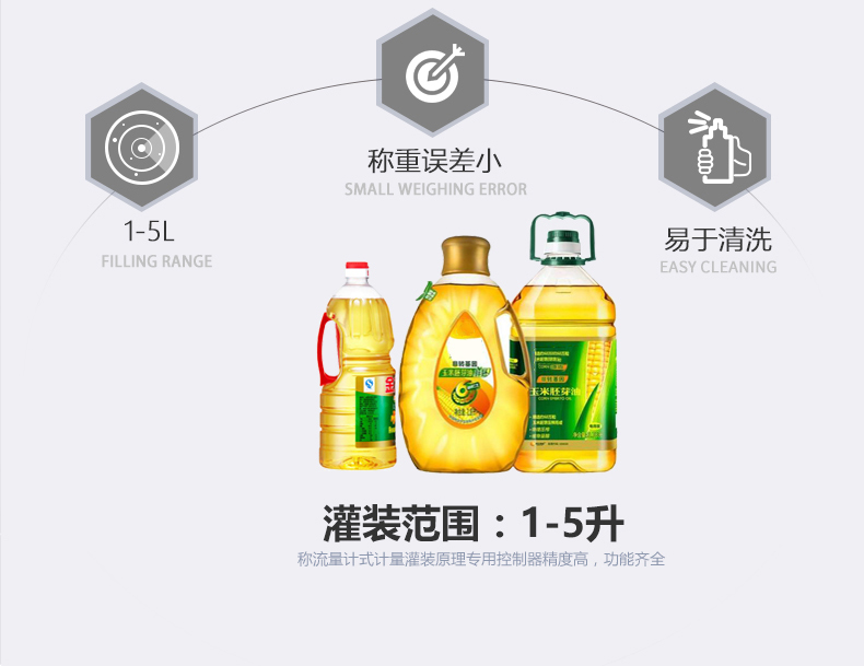 該系列食用油灌裝機采用流量計式計量灌裝原理,多項技術(shù)認(rèn)證,適用于各種規(guī)格(1-5 升)的南瓜籽油、榛子油、牡丹籽油、芝麻油、核桃油、山茶油、亞麻籽油、棉籽油、橄欖油、大豆油、玉米油、菜籽油等食用油灌裝。設(shè)備采用高精度的旋轉(zhuǎn)編碼器計量,保證了 1‰的灌裝精度,在保證灌裝精度的同時,提高了20%-35%的灌裝速度,操作簡單,維護(hù)方便,節(jié)省人工成本,生產(chǎn)效率更高。